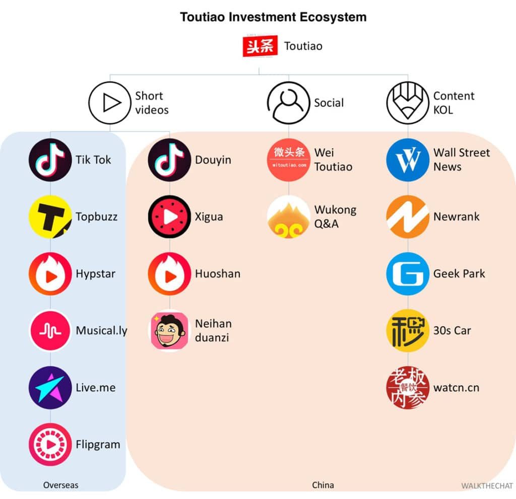 Besides investment in text content, Toutiao also boasts a series of video platforms, including “Xigua Video”, “Huoshan Video”, “Douyin”, etc.