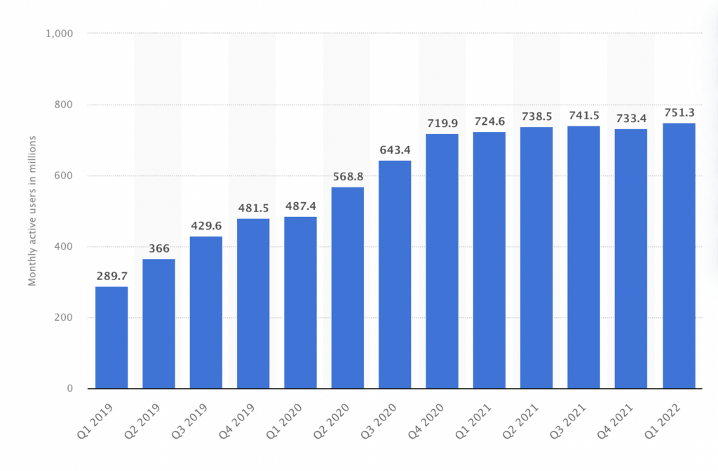 - Today, the average monthly active users were 881.9 million