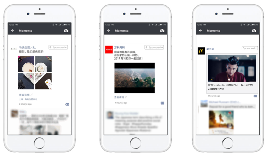 WeChat Moments is restricted to only certain types of advertisers. Companies must either be established brands that are already known in China or foreign companies that are registered and operate in the country.