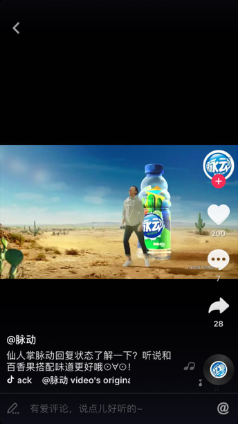 Mai Dong is the brand of a sports vitamin drink that targets consumers aged 18-35, mainly living in urban cities. The brand has its official account on Douyin, with now 2,2k followers and 2 videos broadcasted. The first one is its promotion video.