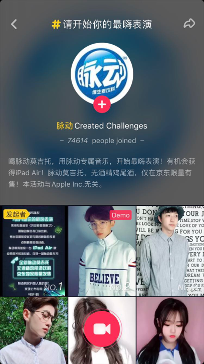The second video presents a contest launched by the brand. The rule is to create a video, using the BGM provided by the brand and with the hashtag #StartYourSpectacle (#请开始你最嗨的表演). Mai Dong will reward the challenger with the highest number of likes an Ipad Air and the top 30 challengers a box of MaiDong’s new drink.