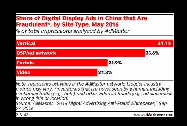 Data from Admaster [a China-based audience measurement company] showed Chinese fraud rates ranging from 20%-40%. By comparison, Integral Ad Science generally puts ad fraud rates in the single digits for other major markets.
