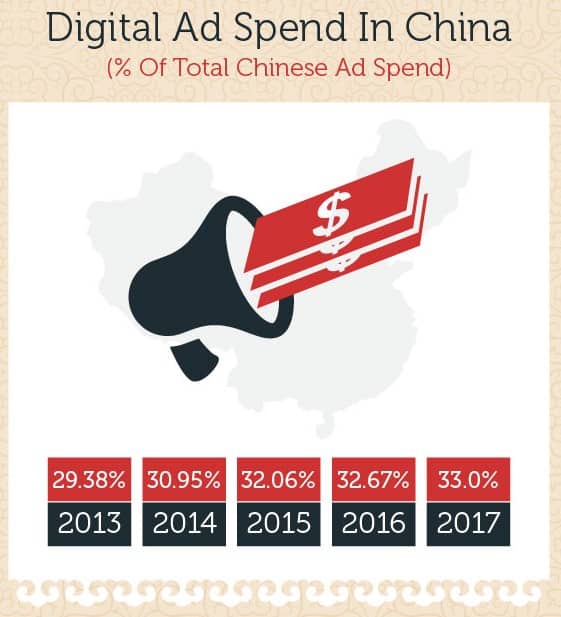 While 86% of the advertisements by the leading multinational companies are done through the medium of television, more and more advertising agencies are now targeting their Chinese consumers through digital advertising. According to a survey, the percentage of people who watch TV in China has remained at a stagnant rate of 3.3 hours per day over the last 10 years. On the other hand, we have seen a rapid increase in the usage of digital devices, this has increased from zero to almost 16 hours per day when compared to a decade ago.