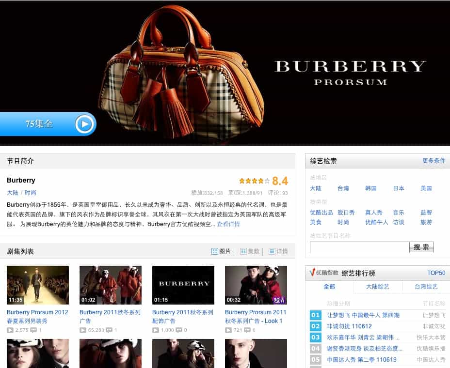 There are many brands such as Burberry, Cartier, and Louis Vuitton which already have an official brand channel on Youku.