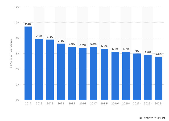 China: the growth rate of real gross domestic product (GDP) from 2011 to 2023