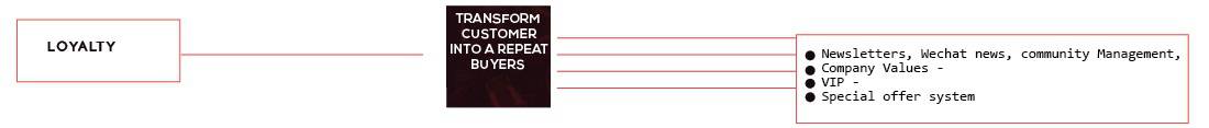 Loyalty comes after you have a consequent number of Chinese customers. You have customers and you want to keep them, loyalty is the way to do it. To keep people loyal to you, you can send them a newsletter: it will keep them in touch with your novelties and make them not forget you. You also have to continue the activities you did during the awareness: Social Media, PR, and blogs. You have to give them the values of the company: indeed people like it when they understand the company’s values, they make them closer to the company. VIP system can be good: in fact, everybody wants to be special, and being a VIP is a way to be different from others. Providing benefits and special offers to see will make them want to be loyal to you.