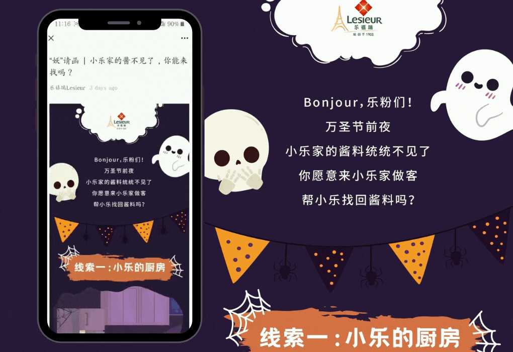 Lesieur is a french condiments company. This year for Halloween, they published on their WeChat service account an engaging post encourages readers to interact with it in order to find out more about a product.