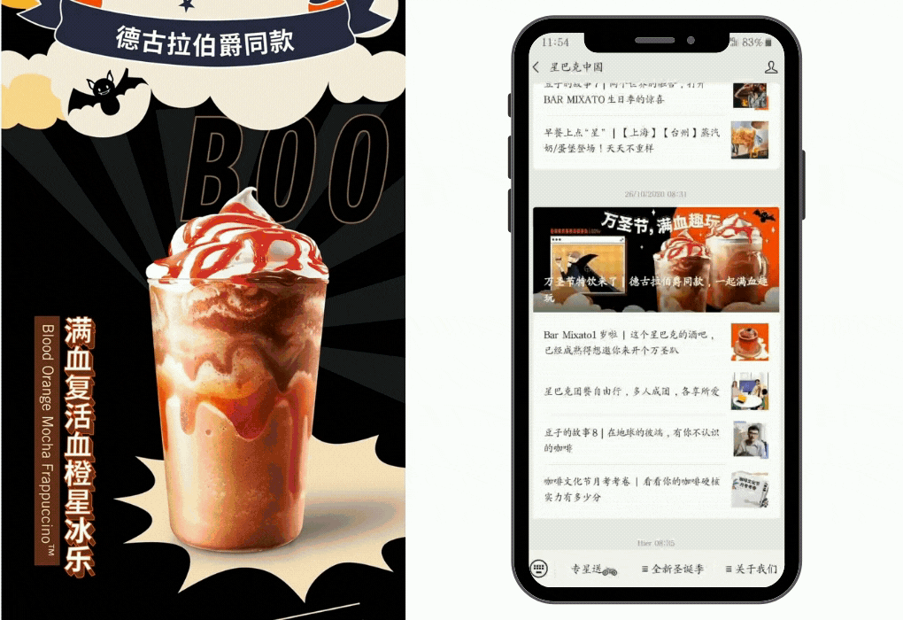 For Halloween, they published an animated & colorful Wechat post on their service account. A post that catches the eyes and introduces the group products to their followers.