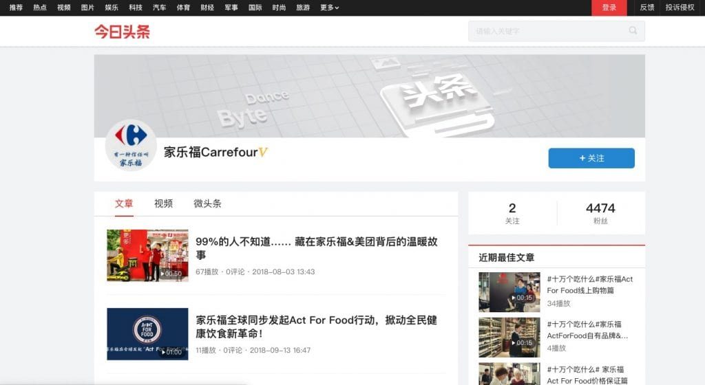 Toutiao created the function of Toutiao Hao or Good Headline, which allows different users to register an account based on their own category and post articles or videos on their own page to gain followers. This is an appealing playground for marketers looking for new ways to amplify their voice through great content.