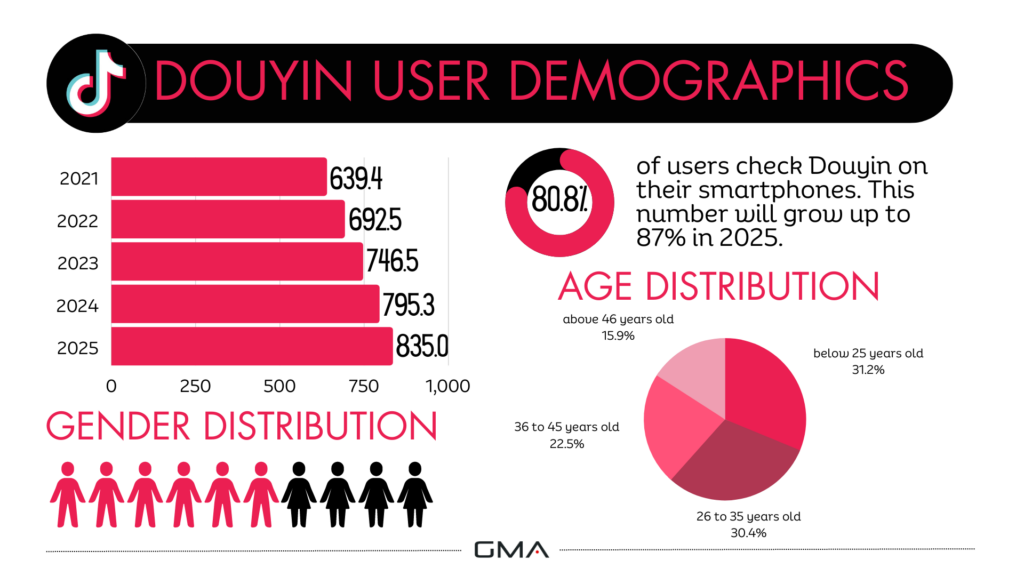 - Douyin’s Massive User Base: Douyin, China’s #1 short video app, boasts over 750 million active users, offering a significant opportunity for businesses to reach and engage with potential customers through e-commerce.