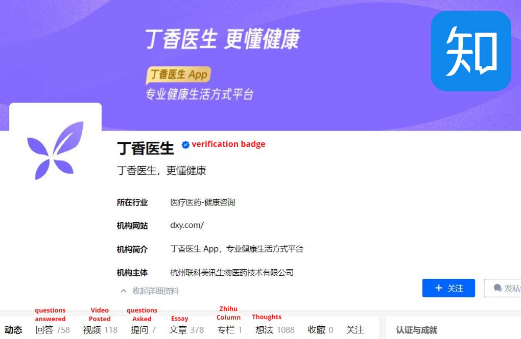By providing comprehensive answers and knowledge on the medical field to Zhihu users, this account was awarded a Zhihu Medal on the topic, increasing its visibility tenfold as well as its followers base. So much so that the account was for a moment the biggest account right behind Zhihu’s Official account.
