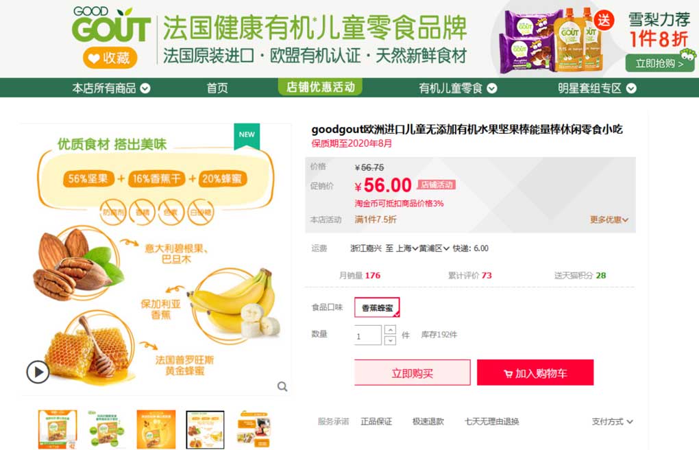 The French company was bought by H&H in 2018 and entered the Chinese market last year. This year, the company will launch new products such as new flavored nut bars, animal-shaped cookies, chocolate cookies, yogurt, and vegetable nuggets.