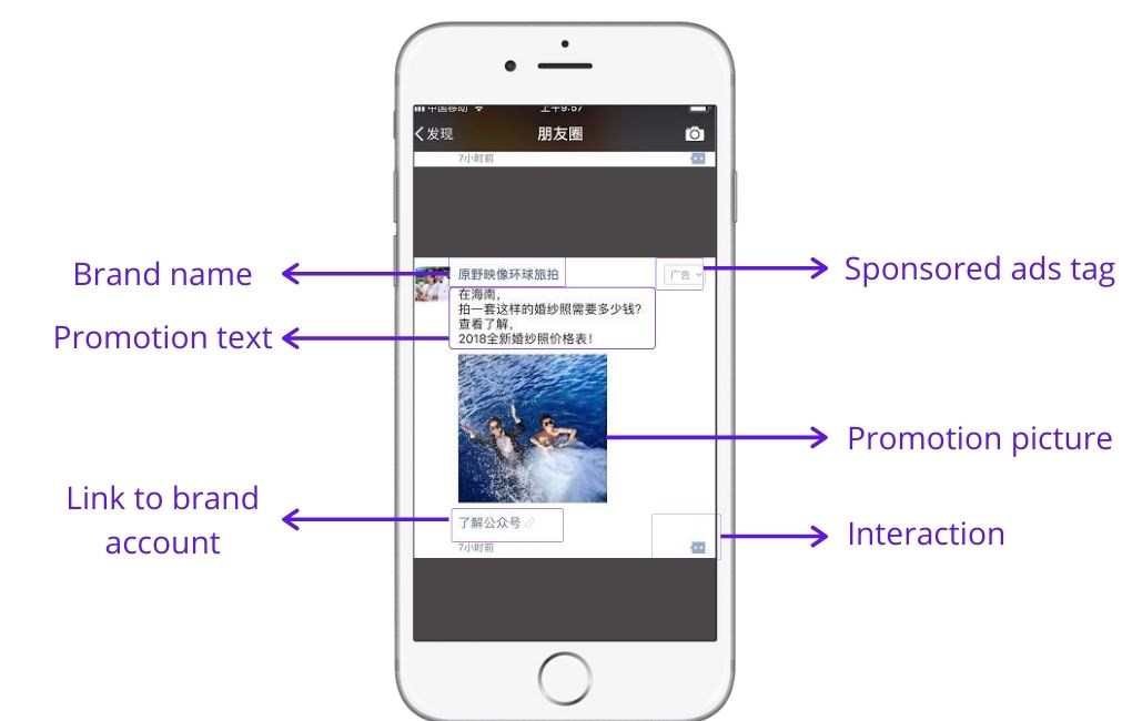 WeChat Moments is restricted to only certain types of advertisers. Companies must either be established brands that are already known in China or foreign companies that are registered and operate in the country.