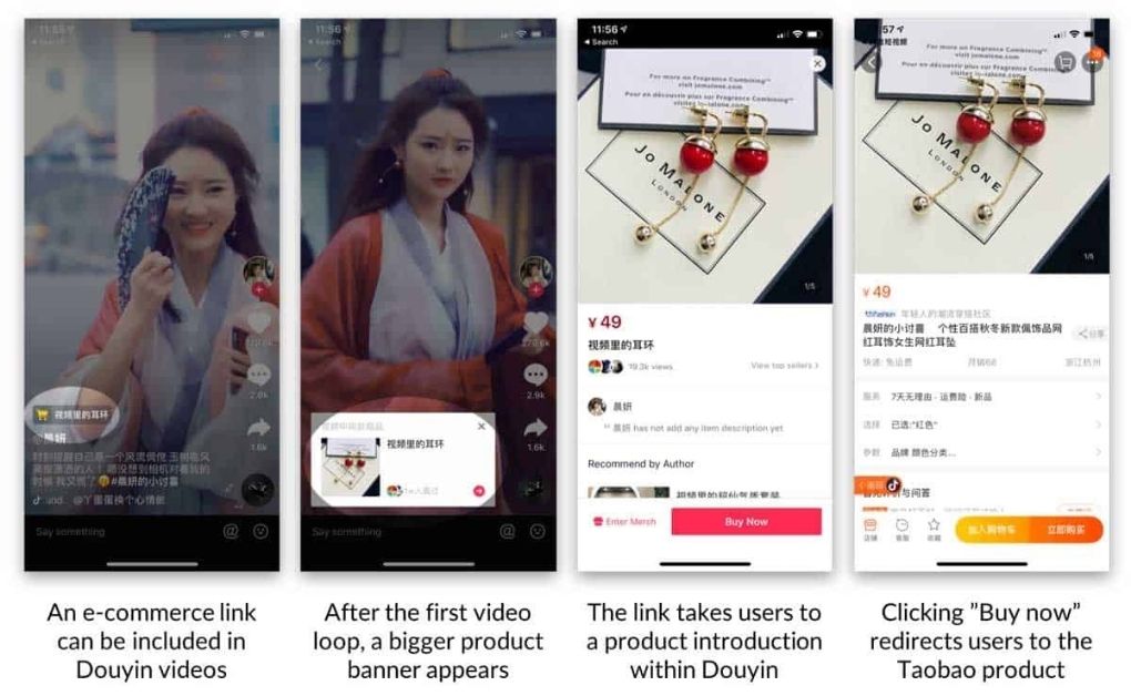 Douyin has teamed up with popular e-commerce platforms such as JD.com and Tmall to launch mini-applications on the relevant platforms. These programs can also be accessed by scanning QR codes using the messaging app WeChat.