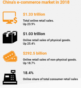 Well, even though the US retail market as a whole has been larger than China since 2013 China’s e-commerce sales have exceeded the US one.