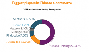 - Alibaba group holding Ltd. (including Alibaba.com, Taobao, and Tmall) dominates e-commerce in China with a 53.3% market share.