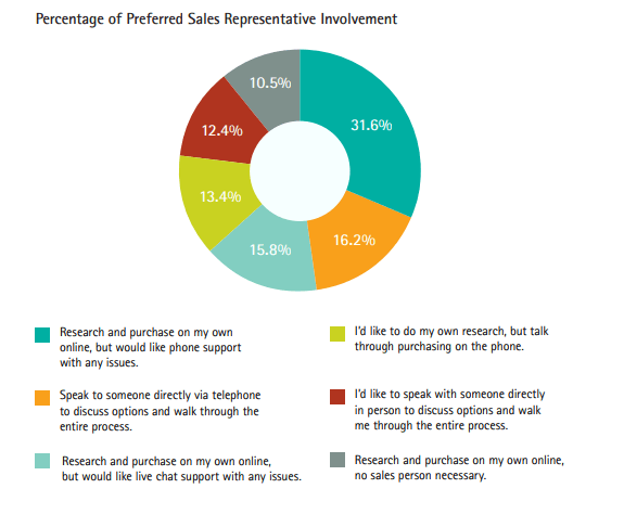 According to a 2014 Accenture study, only 12.4% of buyers want to meet with a sales representative in person or even over the phone. A significant majority (71%) prefer to perform online research, with or without the help of a salesperson.
