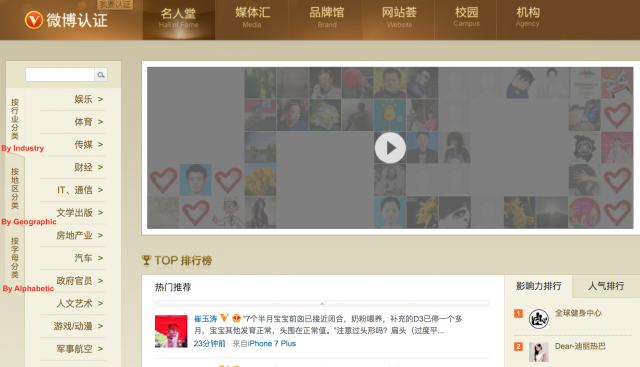 - Weibo has regular users, verified individual users (with an orange V icon), verified organizations and companies (with a blue V icon), and paid VIP members with extra features.