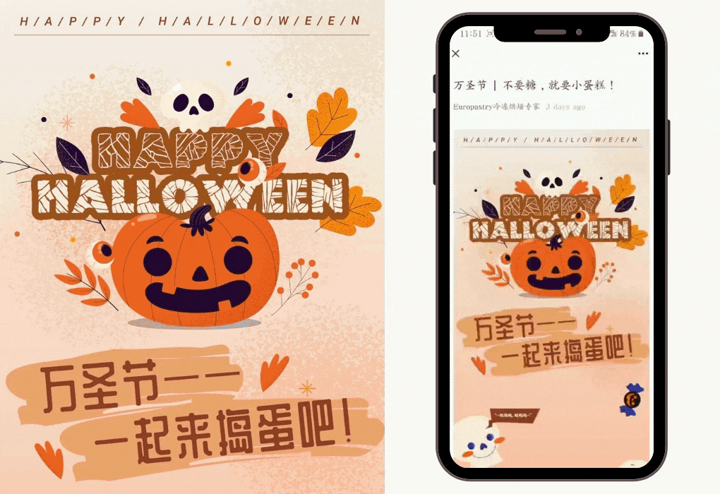 For Halloween, they published an animated & colorful Wechat post on their service account. A post that catches the eyes and introduces the group products to their followers.